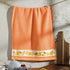 Paño de cocina de algodón tejido en jacquard con cenefa decorativa de motivos de cerezas.