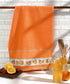 Paño de cocina de algodón tejido en jacquard con cenefa decorativa de naranjas, y cenefa para bordados de 40 puntos de altura.
