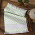 Paño de cocina en algodón afelpado con flecos y cuerpo en jacquard con motivo ajedrezado. Cuenta con aplique de 40 puntos de altura para bordados.