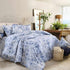 Edredón acolchado 100% algodón de 200 hilos. Doble faz, cuenta con un lado en motivo floral y el reverso en fondo entero liso color gris platina. Incluye dos almohadones de pestaña en fondo entero liso color gris platina.